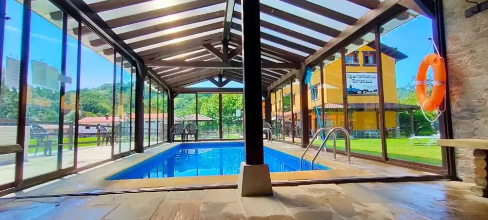 Apartamentos El Castañeu offers a range of accommodations featuring free WiFi, free parking, and non-smoking rooms. Guests can enjoy access to an indoor swimming pool and family-friendly spaces designed for comfort. Located at Corao, s/n, 33556 Corao, Spain, this property provides convenient proximity to local attractions including Parque del Príncipe (4.3 km), Colegiata de San Fernando (4.