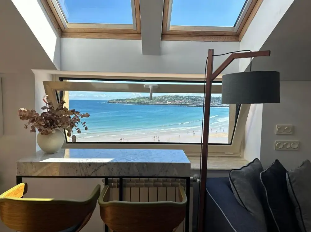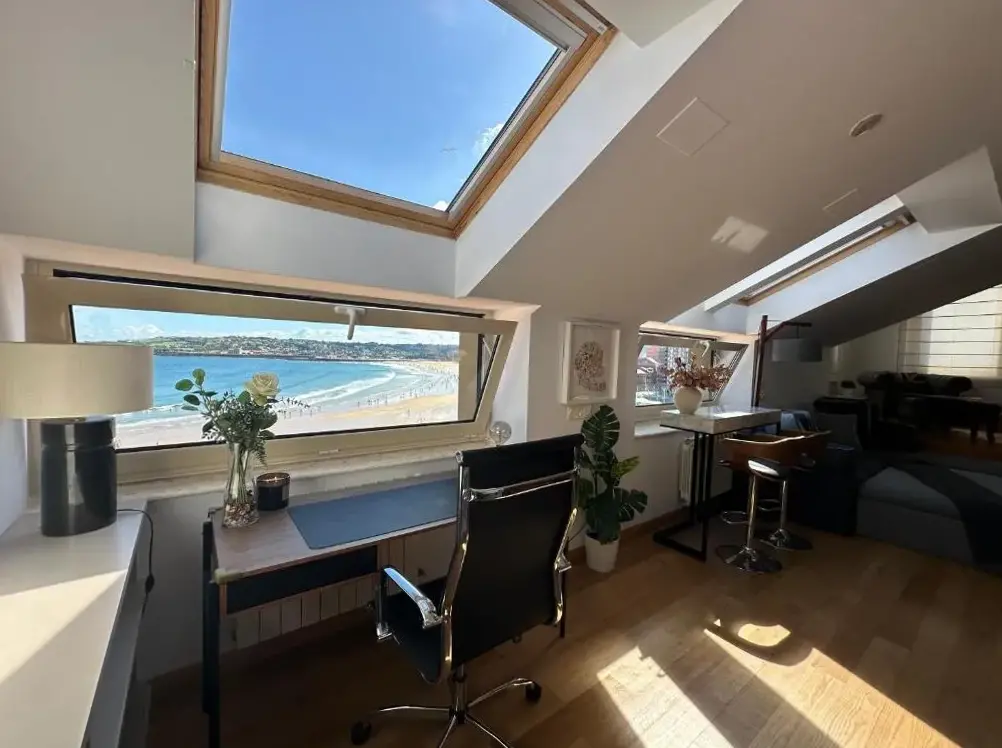 Więcej informacji o Palomar de Corrida ,Atico con terrazaVivienda en Gijon frente al mar oferuje komfortową lokalizację przy brzegu morza, co umożliwia łatwy dostęp do plaży San Lorenzo Beach. Mieszkanie charakteryzuje się małym salonem w stylu kabiny łódki z widokiem na morze, zapewniając wyjątkową atmosferę relaksu.